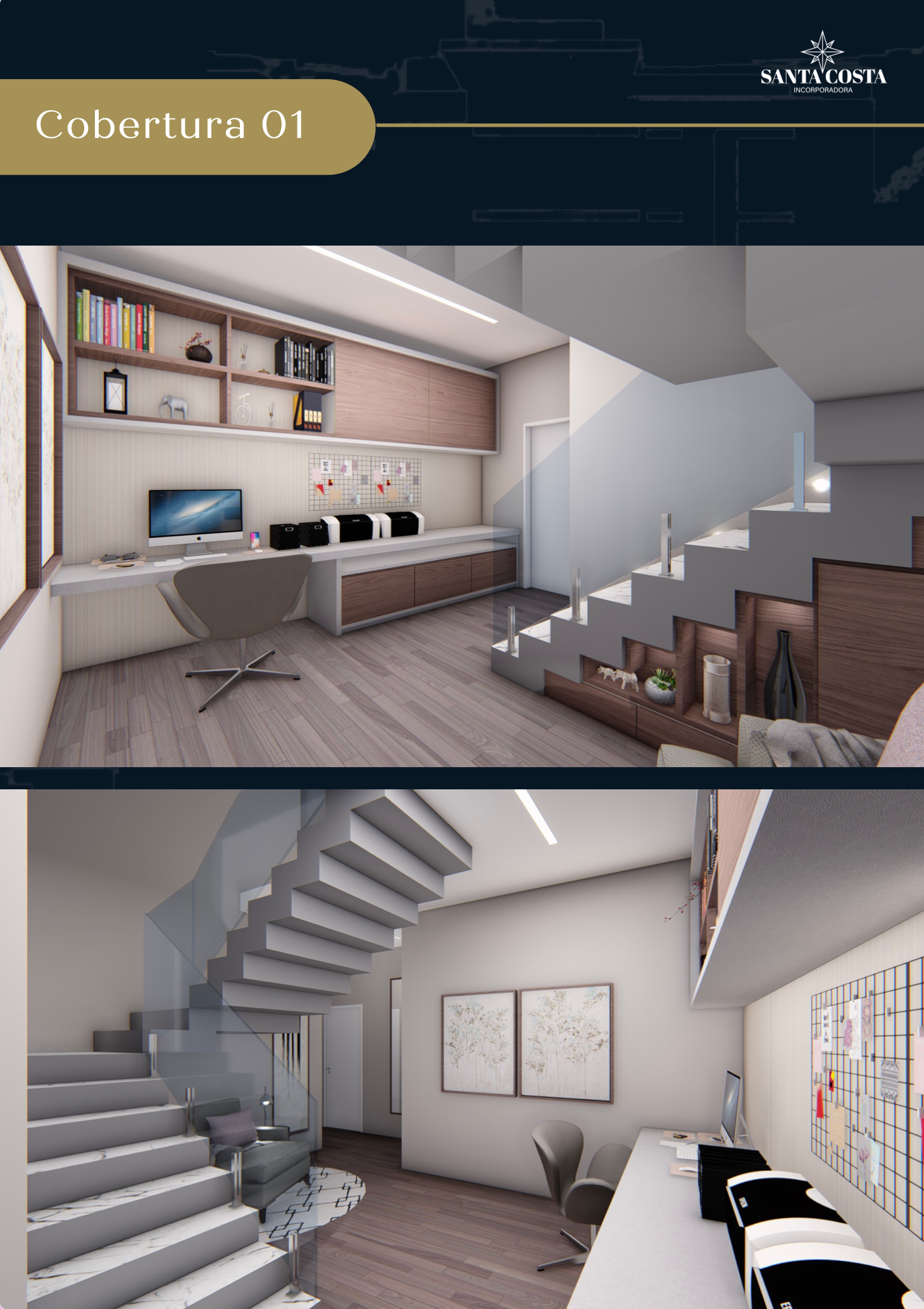 – Cobertura duplex com 2 suítes, terraço e piscina;